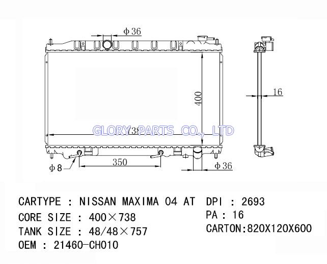DPI: 2693 NISSENS: OEM: 21460-CH010 CAR MODEL: Nissan Maxima' 04 Auto radiator/automovil radiadores