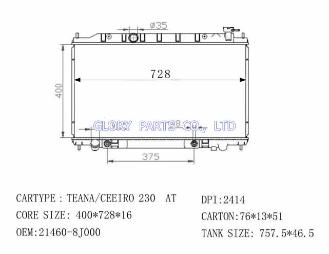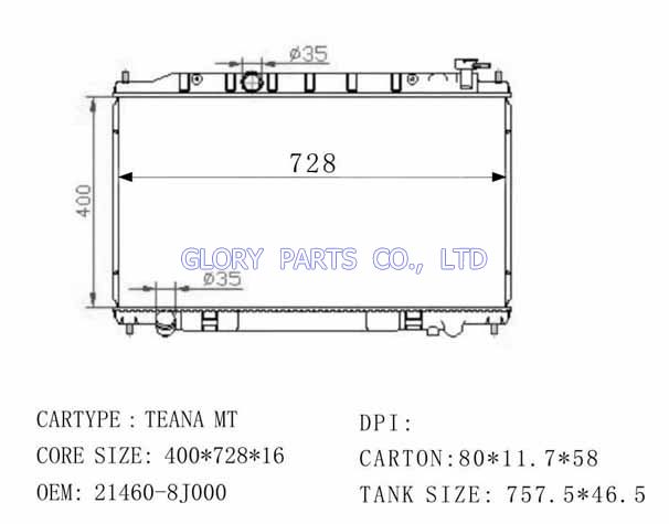 DPI: NISSENS: OEM: 21460-8J000 CAR MODEL: Nissan Teana Auto radiator/automovil radiadores