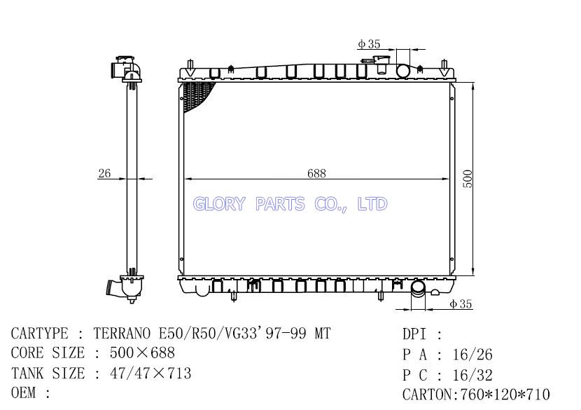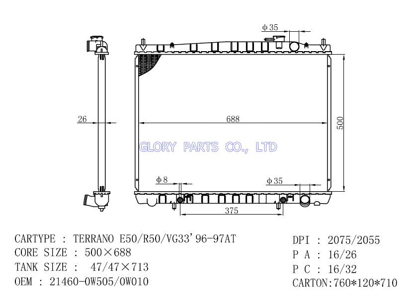 DPI: 2075/2076/2055 NISSENS: OEM: 21460-0W505 CAR MODEL: Nissan Terrano Auto radiator/automovil radiadores