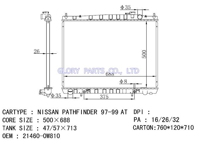 DPI: 2459 NISSENS: 68715 OEM: 21460-0W810 CAR MODEL: Nissan Terrano Auto radiator/automovil radiadores