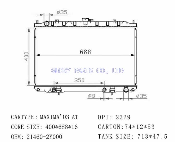 DPI: 2329/2612 NISSENS: OEM: 21460-2Y000 CAR MODEL: Nissan Maxima'03 Auto radiator/automovil radiadores