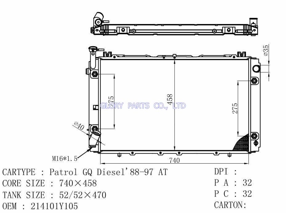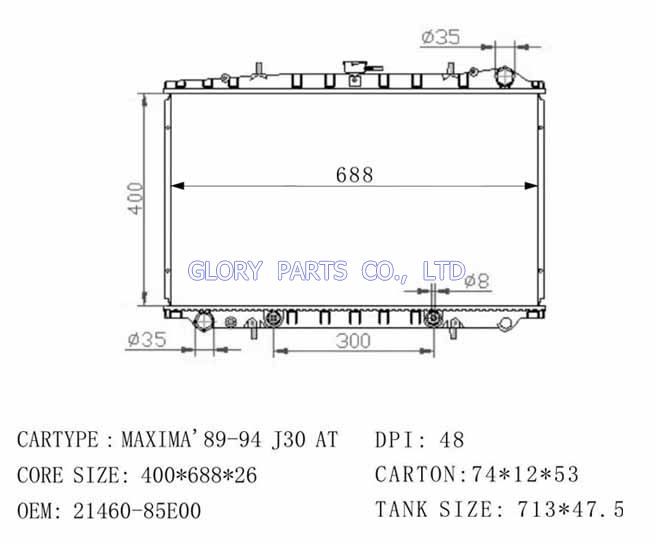 DPI: NISSENS: 62979/62980 OEM: 21460-85E00/21410-85E00 CAR MODEL: Nissan Maxima'89-94 Auto radiator/automovil radiadores