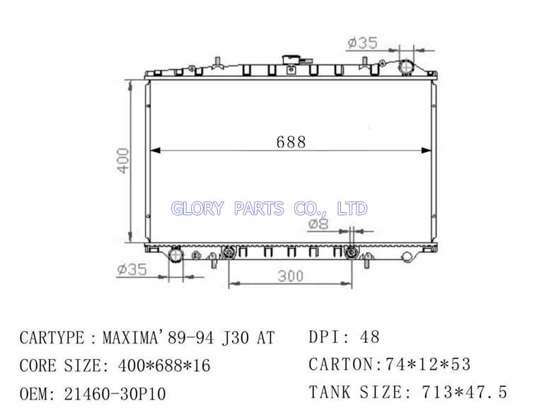 DPI: 48/1242/1941 NISSENS: 62996/62995 OEM: 21460-30P10 CAR MODEL: Nissan Maxima'89-94 Auto radiator/automovil radiadores