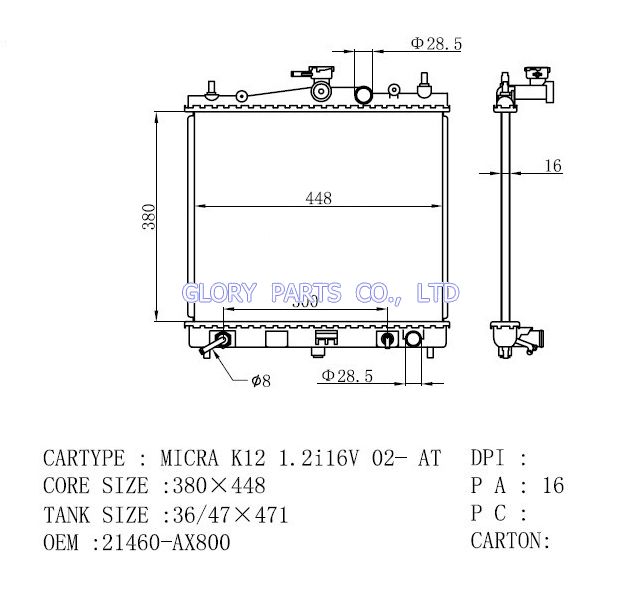 DPI: NISSENS: 68700A OEM: 21460-AX800 CAR MODEL: Nissan Micra Auto radiator/automovil radiadores