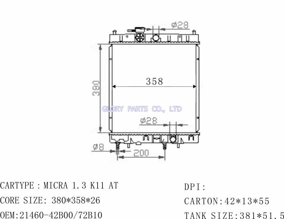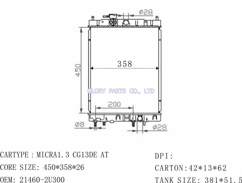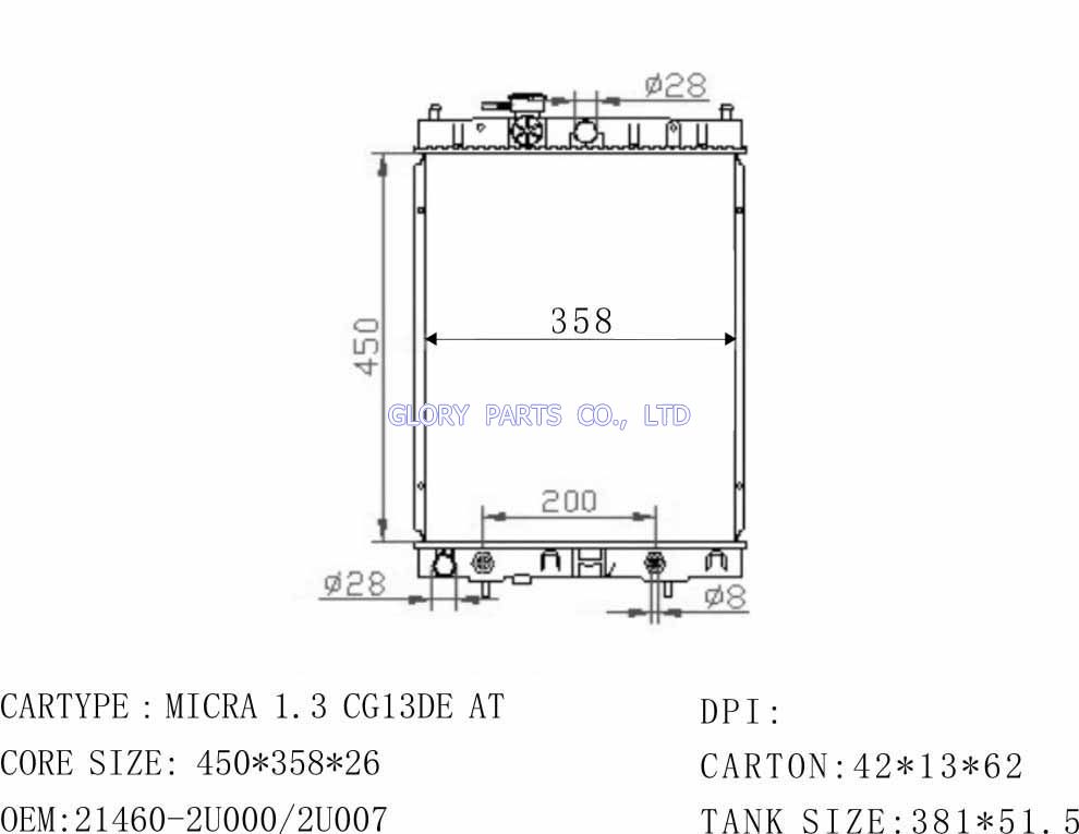 DPI: NISSENS: OEM: 21460-2U000 CAR MODEL: Nissan Micra Auto radiator/automovil radiadores