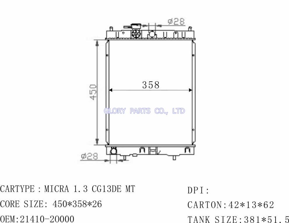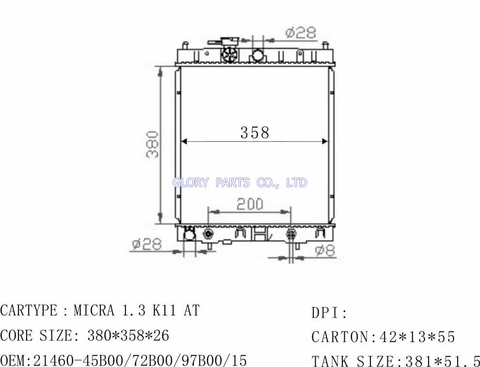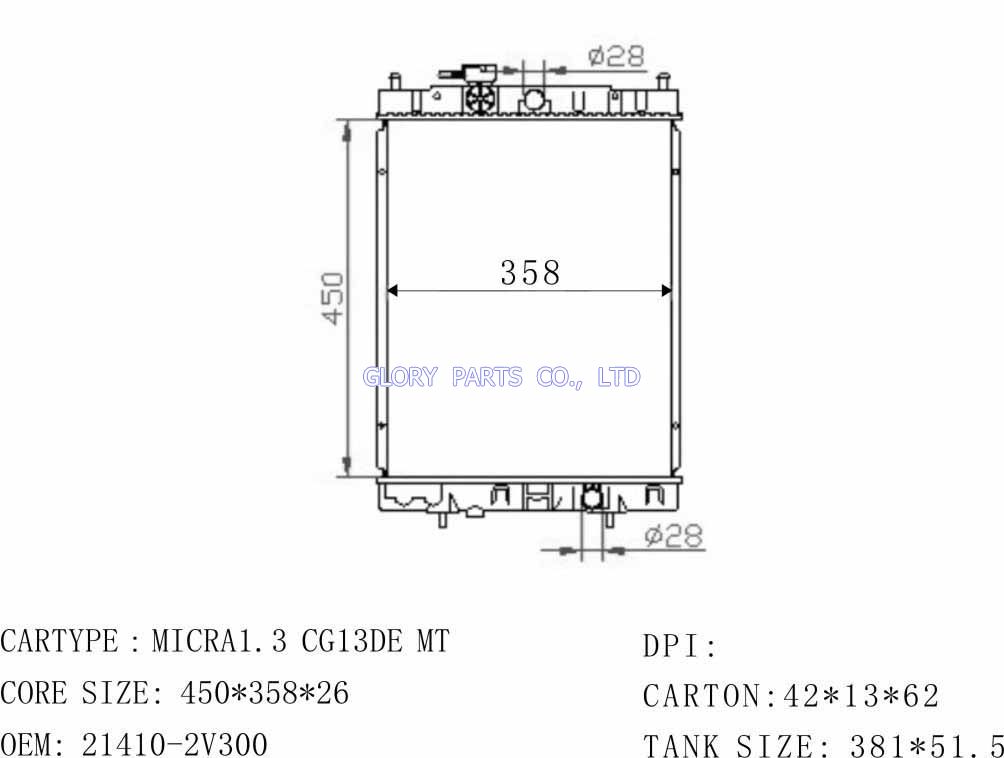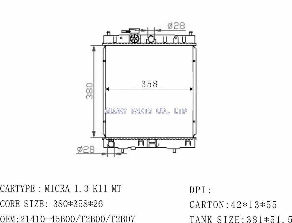 DPI: NISSENS: 62954/629871 OEM: 21460-45B00/72B00/97B00 CAR MODEL: Nissan Micra Auto radiator/automovil radiadores