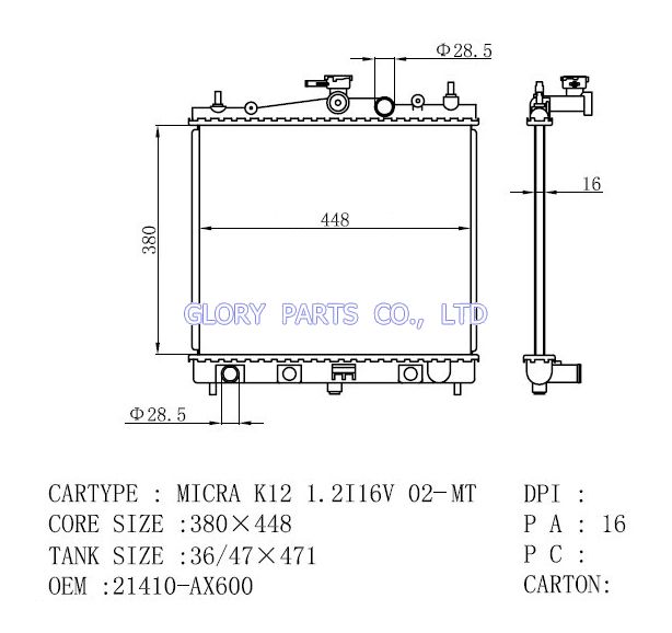 DPI: NISSENS: 62902A OEM: 21410-AX600 CAR MODEL: Nissan Micra Auto radiator/automovil radiadores