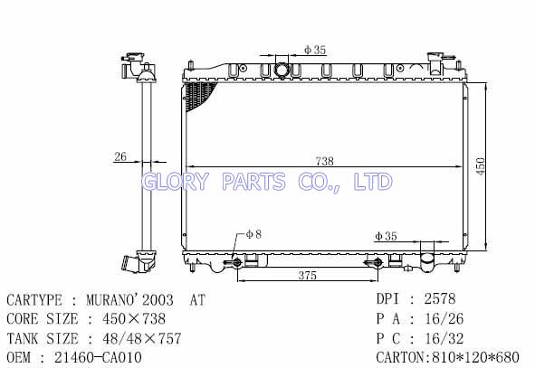 DPI: 2578 NISSENS: 68712 OEM: 21460-CA010 CAR MODEL: Nissan Murano Auto radiator/automovil radiadores