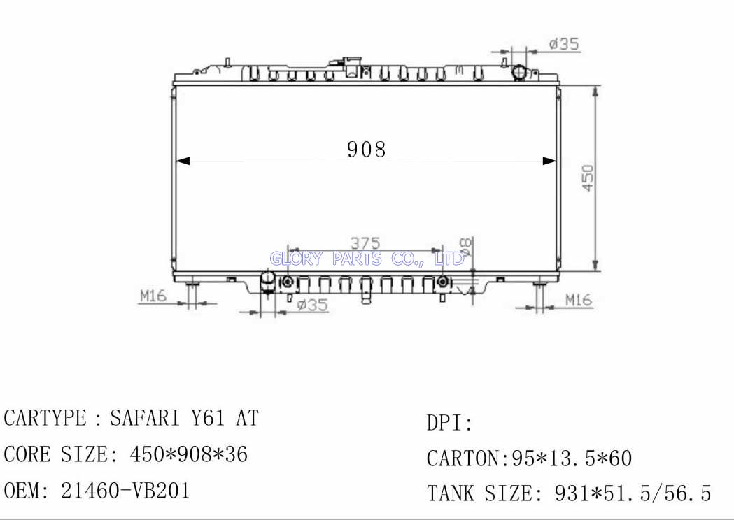 DPI: NISSENS: OEM: 21460-VB201 CAR MODEL: Nissan Patrol Auto radiator/automovil radiadores