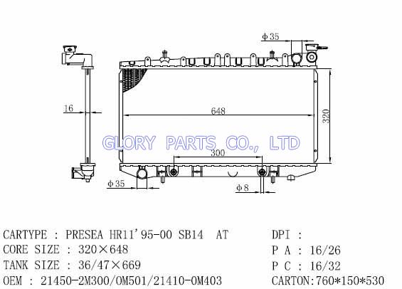 DPI: NISSENS: OEM: 21450-2M300/0M501/21410-0M403 CAR MODEL: Nissan Presea Hr11 Auto radiator/automovil radiadores