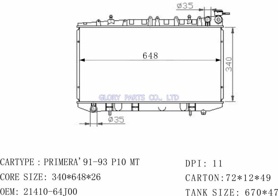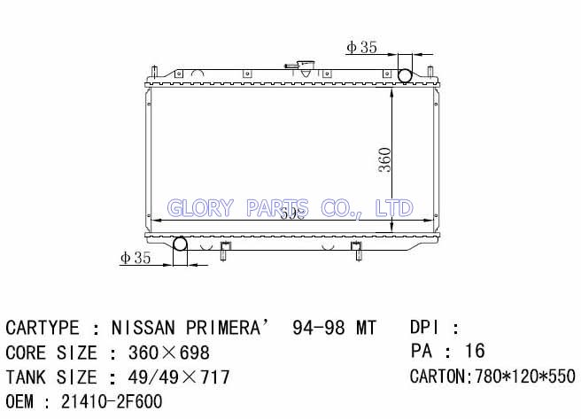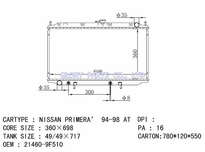 DPI: NISSENS: 62923A/62927A OEM: 21410-2F600 CAR MODEL: Nissan Primera Auto radiator/automovil radiadores