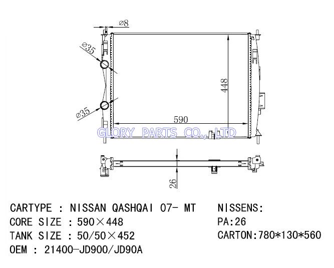 DPI: NISSENS: OEM: 21400-JD900/21400-JD90A CAR MODEL: Nissan Dualis Auto radiator/automovil radiadores