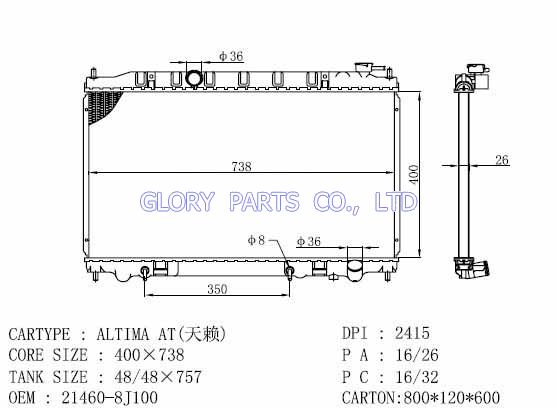 DPI: 2415 NISSENS: OEM: 21460-8J100 CAR MODEL: Nissan Auto radiator/automovil radiadores