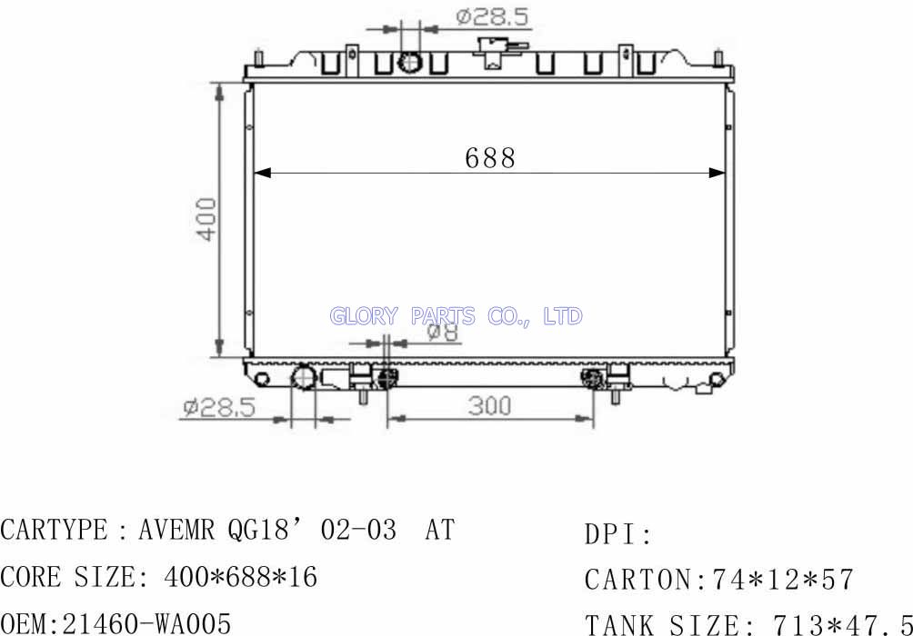 DPI: NISSENS: OEM: 21460-WA005 CAR MODEL: Nissan 0003-W11 Auto radiator/automovil radiadores