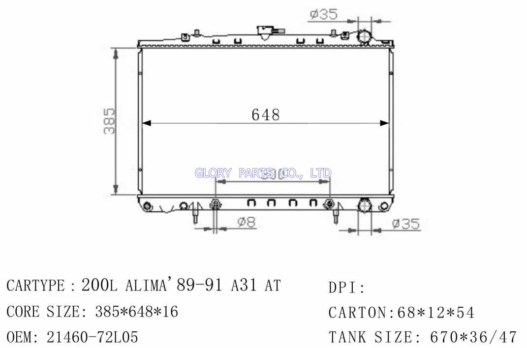 DPI: NISSENS: OEM: 21460-72L05 CAR MODEL: Nissan 200L Alima Auto radiator/automovil radiadores