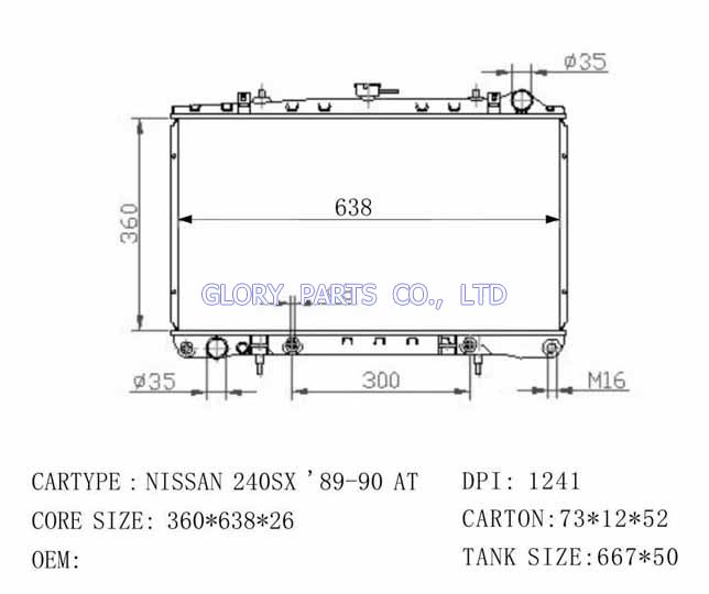 DPI: 1241 NISSENS: OEM: CAR MODEL: Nissan 240Sx Auto radiator/automovil radiadores