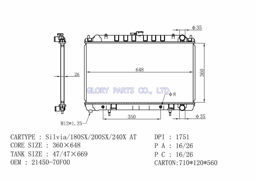 DPI: 1751 NISSENS: OEM: 21450-70F00 CAR MODEL: Nissan 240Sx Auto radiator/automovil radiadores