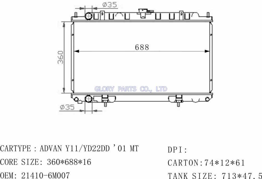 DPI: NISSENS: OEM: 21410-6M007 CAR MODEL: Nissan Advan Y11 Auto radiator/automovil radiadores