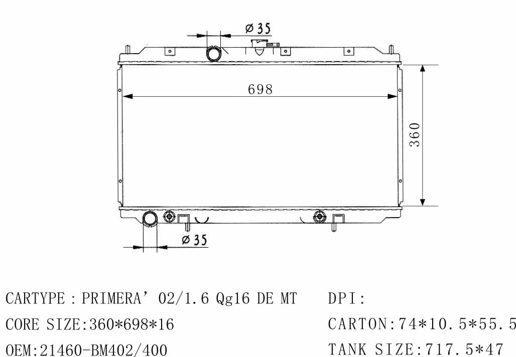 DPI: NISSENS: 68718 OEM: 21410-BU000 CAR MODEL: Nissan Almera Tino 00- Auto radiator/automovil radiadores