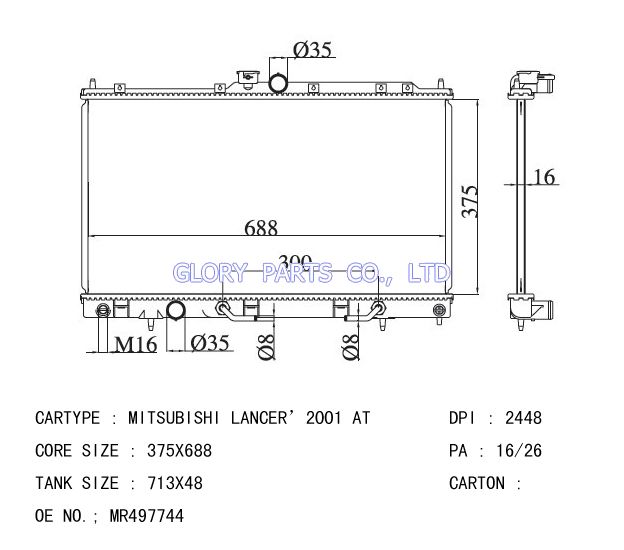 DPI: 2448 NISSENS: 62894 OEM: MR968858/MR497744 AT CAR MODEL: Mitsubishi Lancer'2003 Auto radiator/automovil radiadores