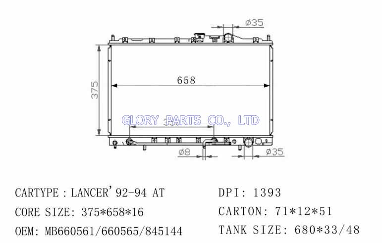 DPI: 1393 NISSENS: OEM: MB660561/MB660562 CAR MODEL: Mitsubishi Lancer'92-94 Auto radiator/automovil radiadores