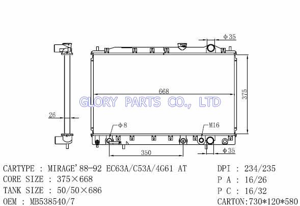 DPI: 234/235 NISSENS: 62838 OEM: MB538547 CAR MODEL: Mitsubishi Mirage Auto radiator/automovil radiadores