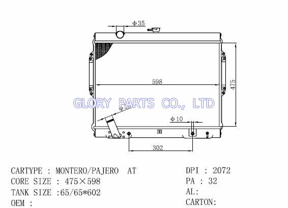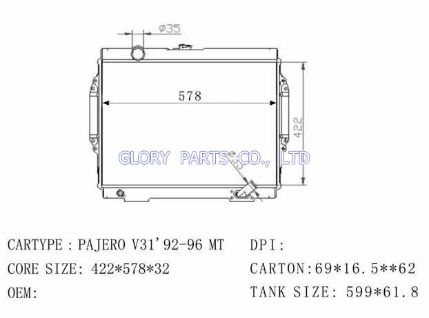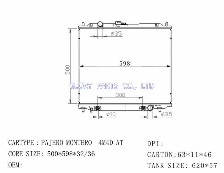 DPI: NISSENS: 62895 OEM: MR571147 CAR MODEL: Mitsubishi Pajero Auto radiator/automovil radiadores