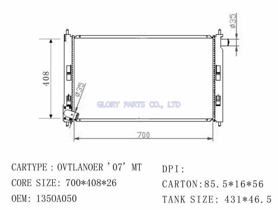 DPI: 2979/2978 NISSENS: 628952 OEM: 1350A050/MN156092 CAR MODEL: Mitsubishi Outlander'07 Auto radiator/automovil radiadores