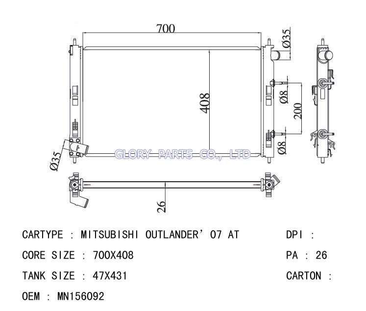 DPI: NISSENS: OEM: MN156092 CAR MODEL: Mitsubishi Outlander'07 Auto radiator/automovil radiadores