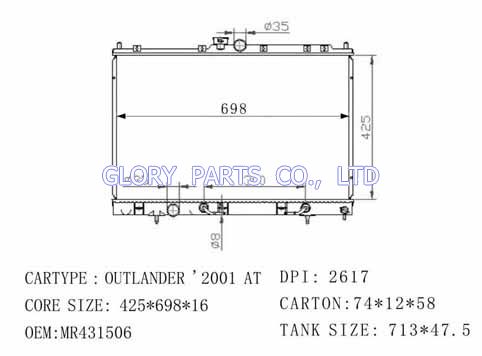 DPI: 2617 NISSENS: OEM: MR431506 CAR MODEL: Mitsubishi Outlander'01 Auto radiator/automovil radiadores