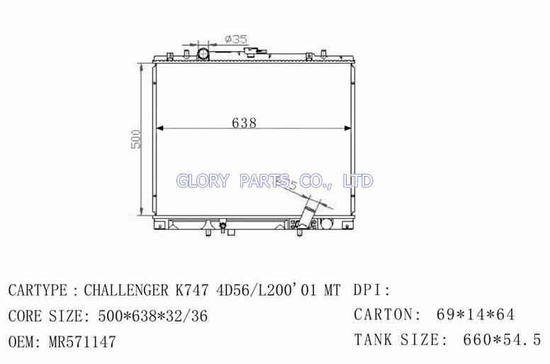 DPI: NISSENS: 62892 OEM: MR281023 CAR MODEL: Mitsubishi Storm L200 Auto radiator/automovil radiadores