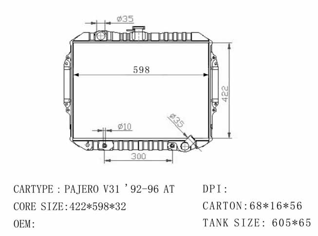 DPI: NISSENS: OEM: MR373172 CAR MODEL: Mitsubishi Pajero'99 Auto radiator/automovil radiadores