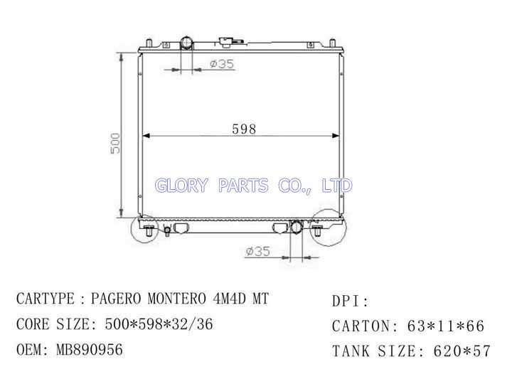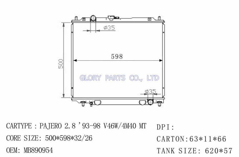 DPI: NISSENS: 62802 OEM: MB890957 CAR MODEL:Mitsubishi Pajero Montero Auto radiator/automovil radiadores