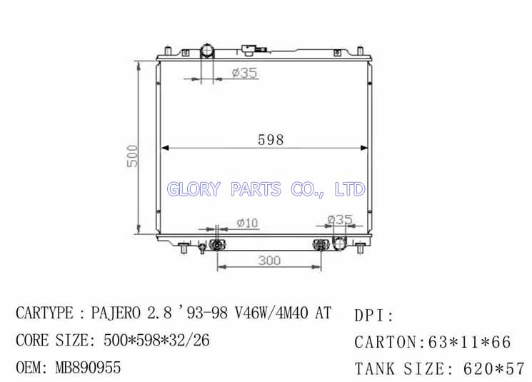DPI: NISSENS: 62853 OEM: MB890955 CAR MODEL: Mitsubishi Pajero Auto radiator/automovil radiadores