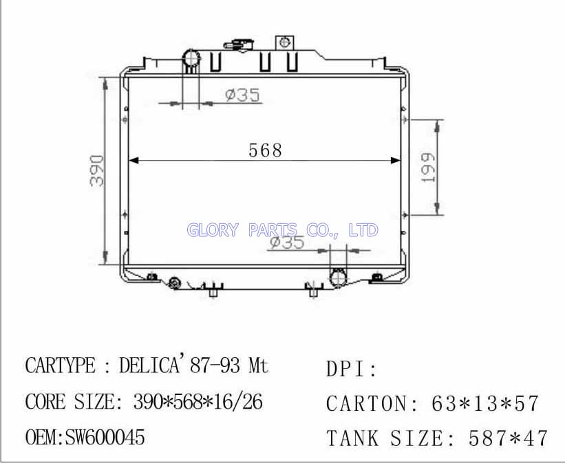 DPI: NISSENS: OEM: SW600045 CAR MODEL: Mitsubishi Delica'87-93 Auto radiator/automovil radiadores