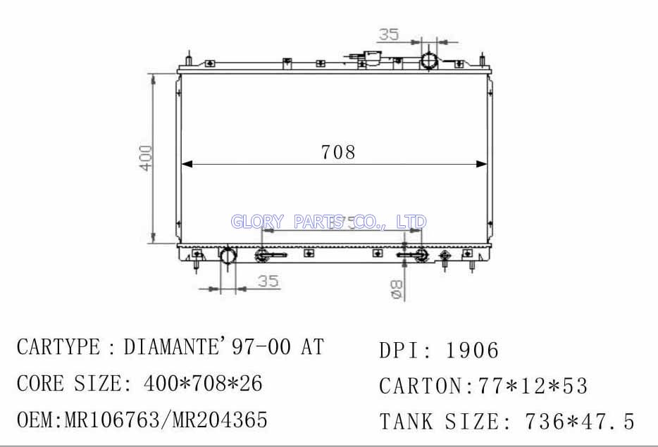 DPI: 1906 NISSENS: OEM: MR160763/MR204365 CAR MODEL: Mitsubishi Diamante Auto radiator/automovil radiadores