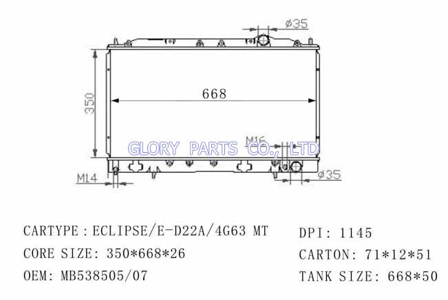 DPI: 1145/1949 NISSENS: 62865 OEM: MB538506 CAR MODEL: Mitsubishi Eclipse Auto radiator/automovil radiadores