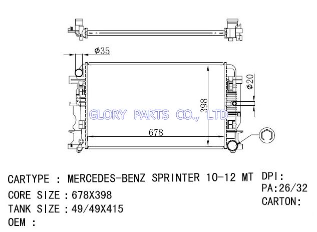 DPI: 13318 NISSENS: OEM: CAR MODEL:Mercedes-Benz Sprinter 06 Auto radiator/automovil radiadores