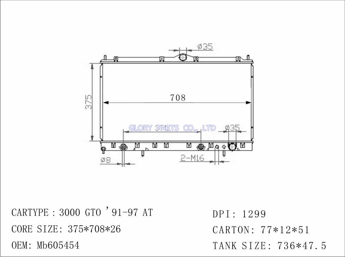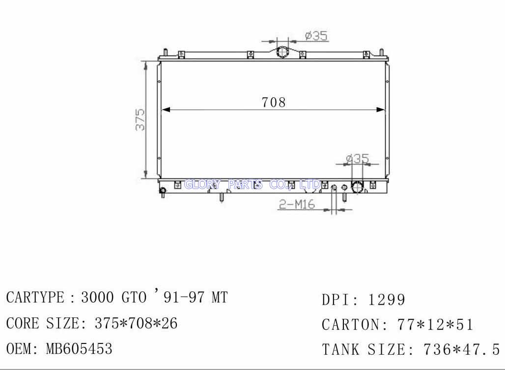 DPI: 1299 NISSENS: OEM: MB605454 CAR MODEL: Mitsubishi 3000 Auto radiator/automovil radiadores