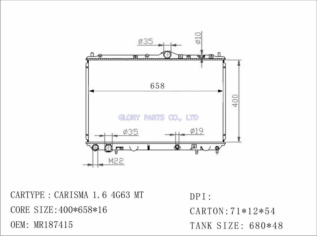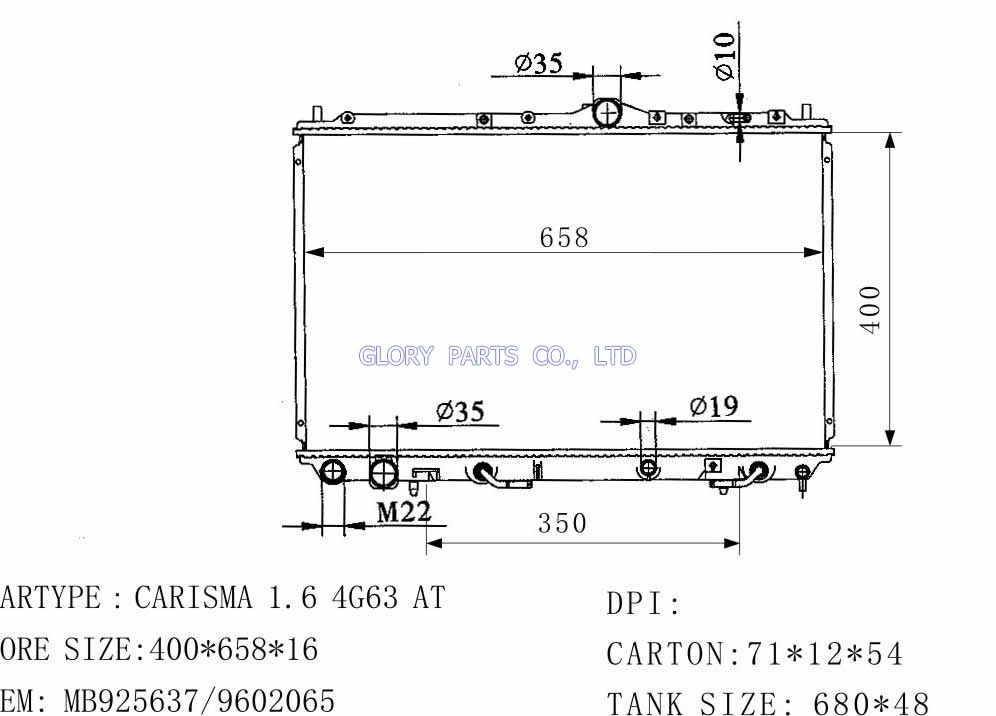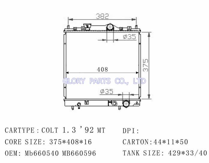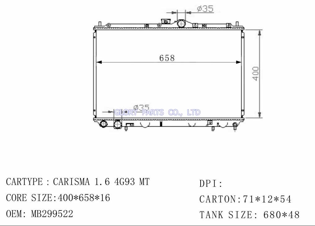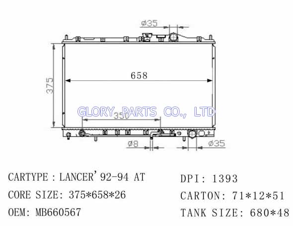 DPI: 1393/1402 NISSENS: 62844 OEM: MB660567 CAR MODEL: Colt/Lancer IV 92-93 Auto radiator/automovil radiadores