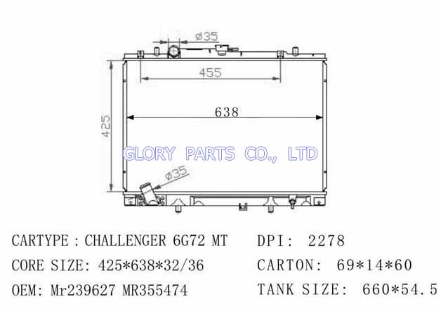 DPI: 2278 NISSENS: 68154 OEM: MR239627/MR355474 CAR MODEL: Mitsubishi Challenger Auto radiator/automovil radiadores