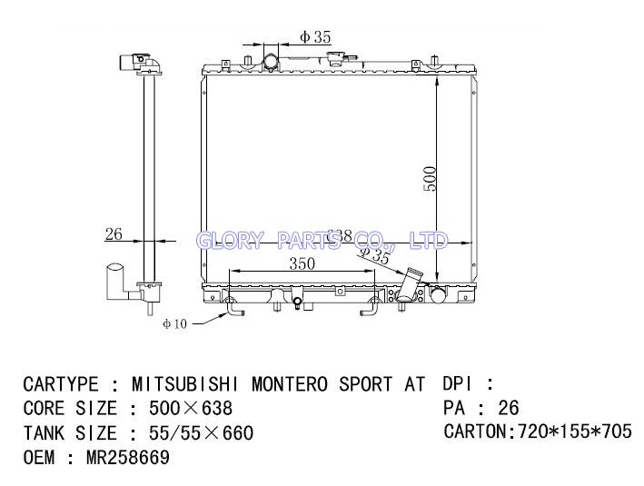 DPI: NISSENS: 62895A OEM: MR258668/MR258669 CAR MODEL: Mitsubishi Challenger Auto radiator/automovil radiadores