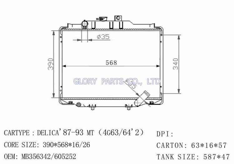 DPI: NISSENS: 67034 OEM: MB356342/605252 MT CAR MODEL: Mitsubishi Delica'87-93 Auto radiator/automovil radiadores