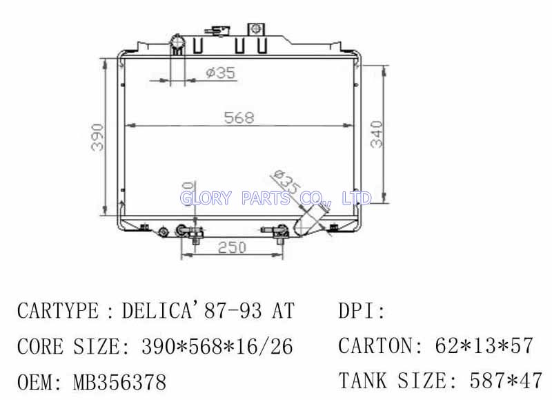 DPI: NISSENS: 67034 OEM: MB356378 AT CAR MODEL: Mitsubishi Delica'87-93 Auto radiator/automovil radiadores