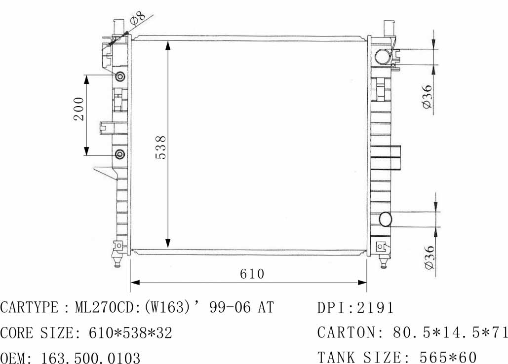 DPI: NISSENS: 62787A OEM: 1635000103 CAR MODEL: Mercedes-Benz W163 Auto radiator/automovil radiadores