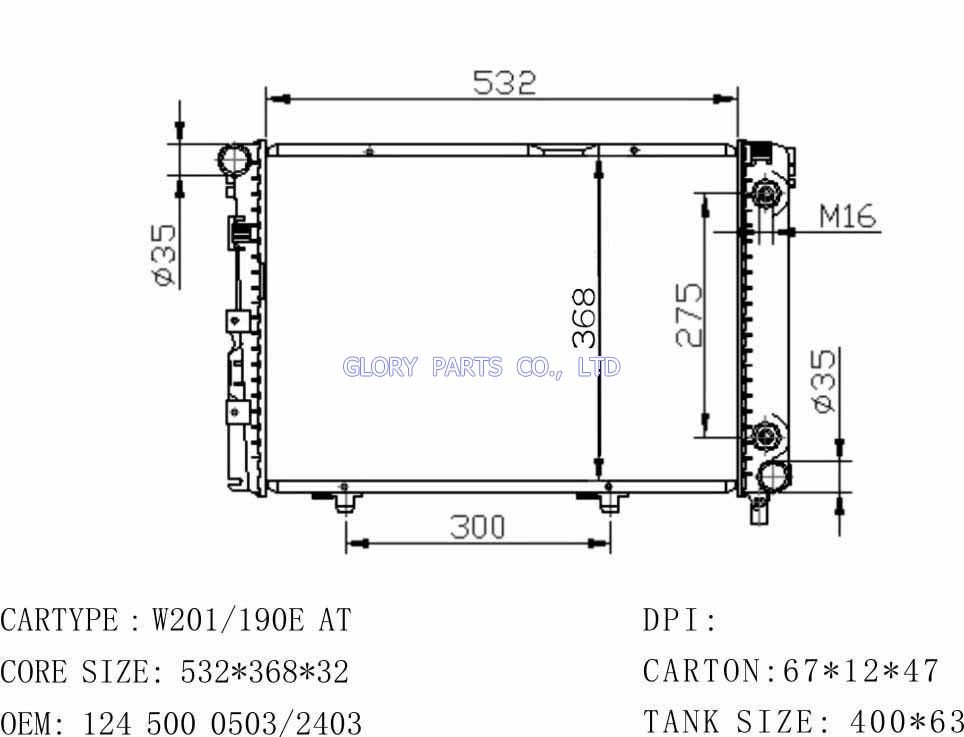 DPI: NISSENS: 62557A OEM: 1245000503/1245002403 CAR MODEL: Mercedes-Benz W201 Auto radiator/automovil radiadores