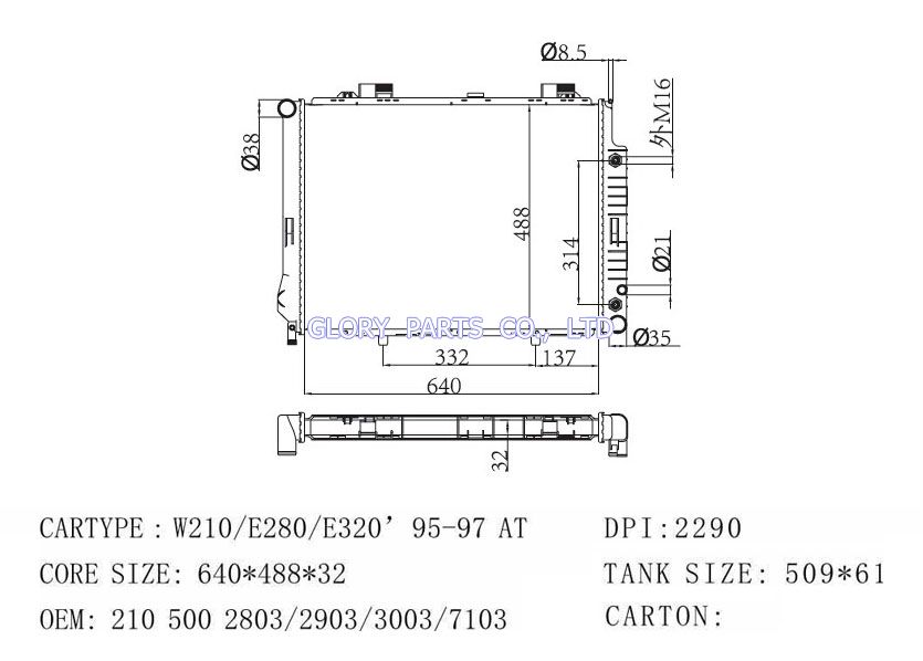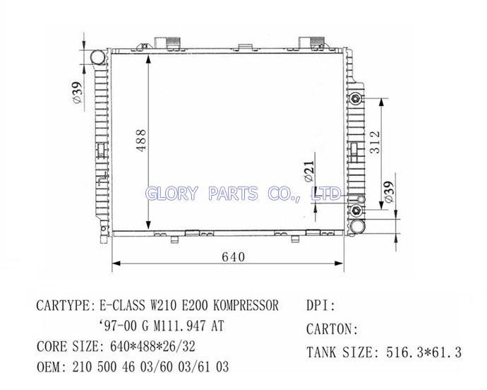 DPI: 2290 NISSENS: 62691A OEM: 2105002803/2903/3003/7103 CAR MODEL: Mercedes-Benz W210 Auto radiator/automovil radiadores