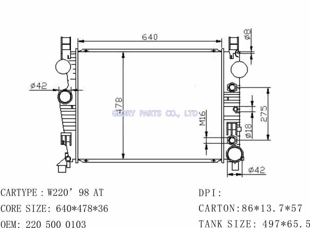 DPI: 2888/2652 NISSENS: 62772/62773A OEM: 2205000103/2205000903 CAR MODEL: Mercedes-Benz W220 Auto radiator/automovil radiadores