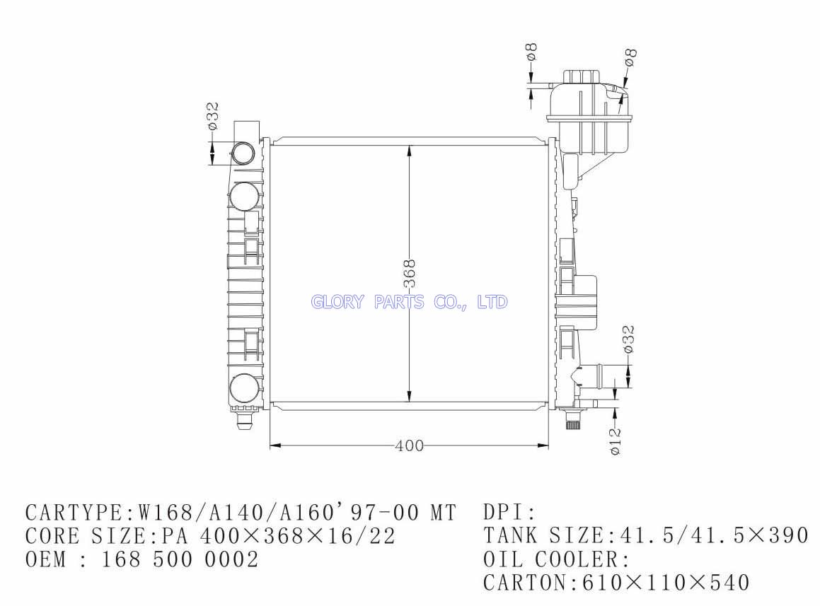 DPI: NISSENS: 62663 OEM: 1685000002 CAR MODEL: Mercedes-Benz A-Class Auto radiator/automovil radiadores