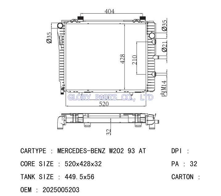 DPI: NISSENS: 62712A OEM: 2025005103/2025005203 CAR MODEL: Mercedes-Benz C-Class Auto radiator/automovil radiadores